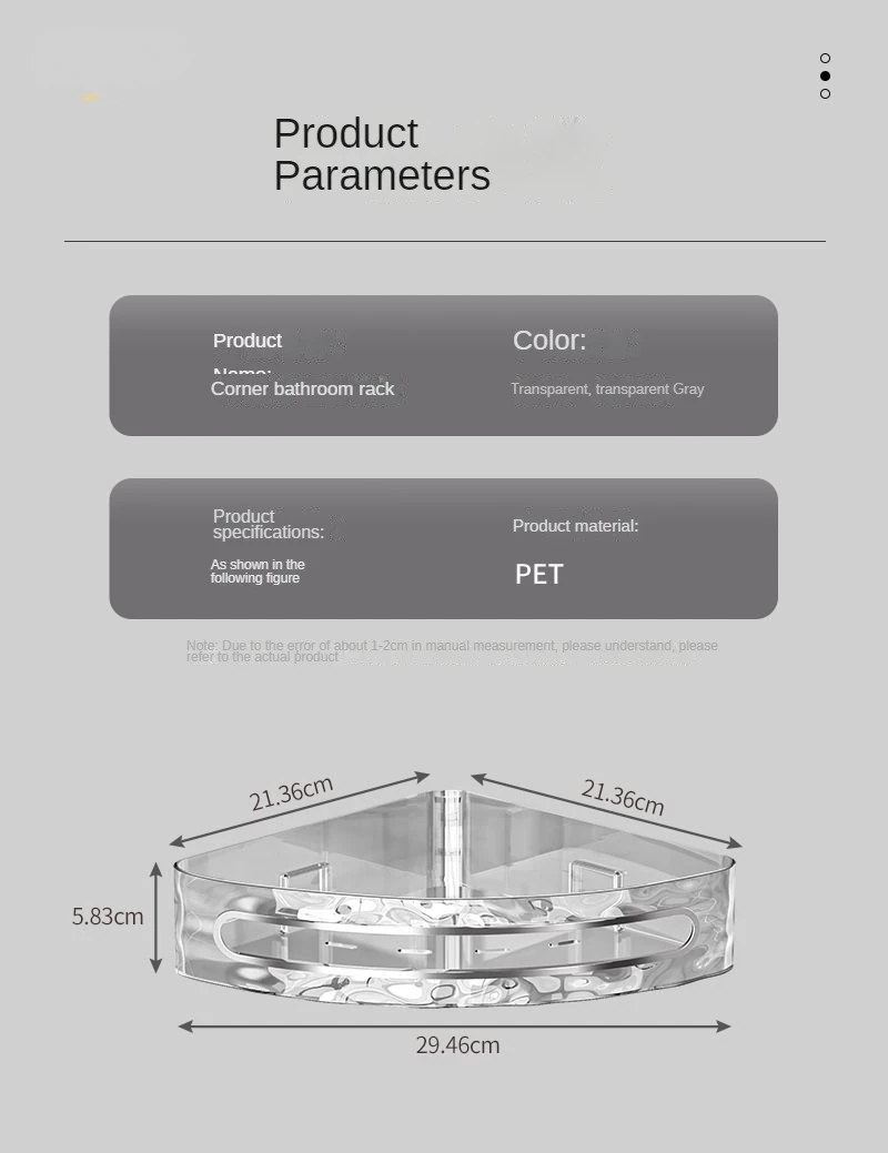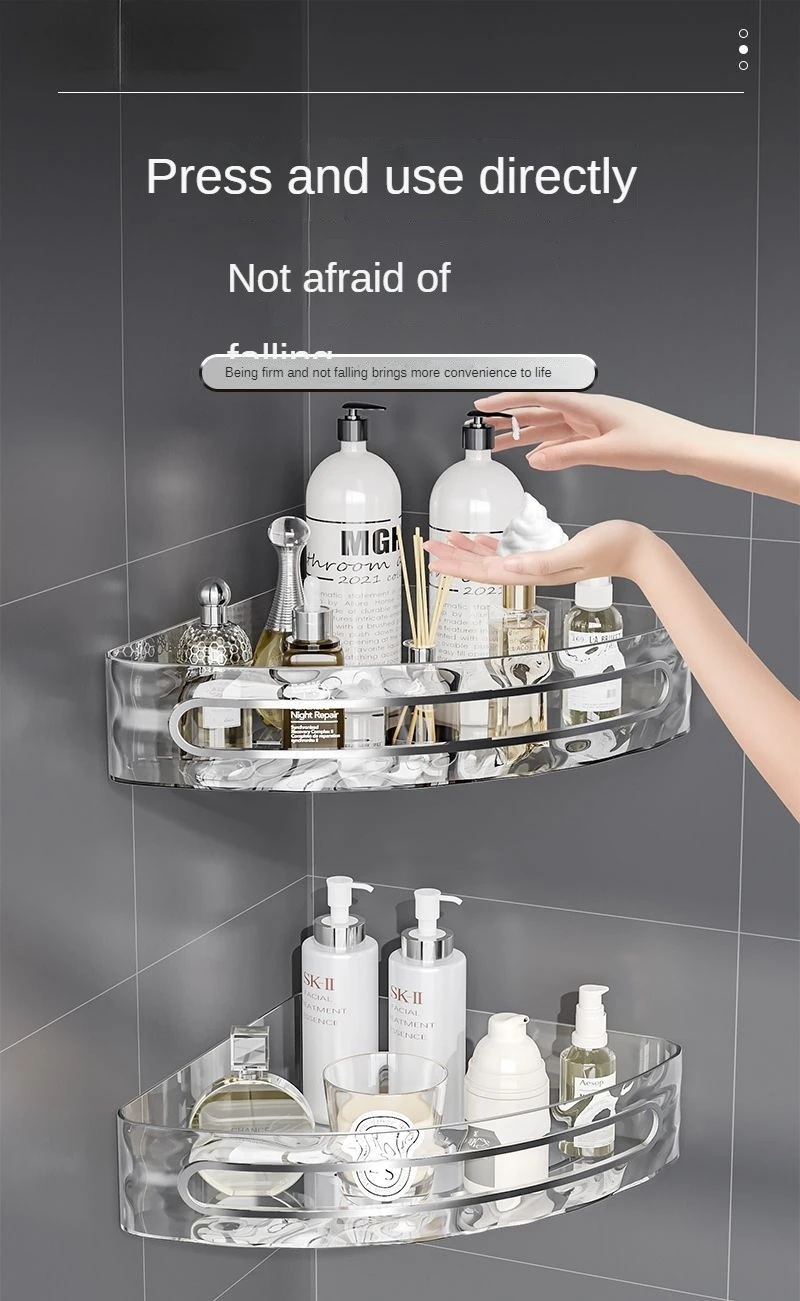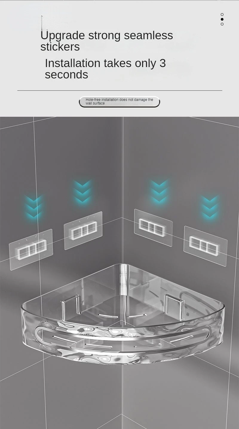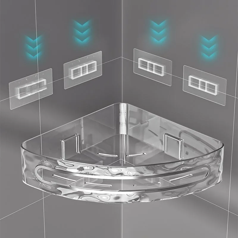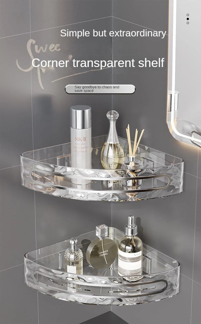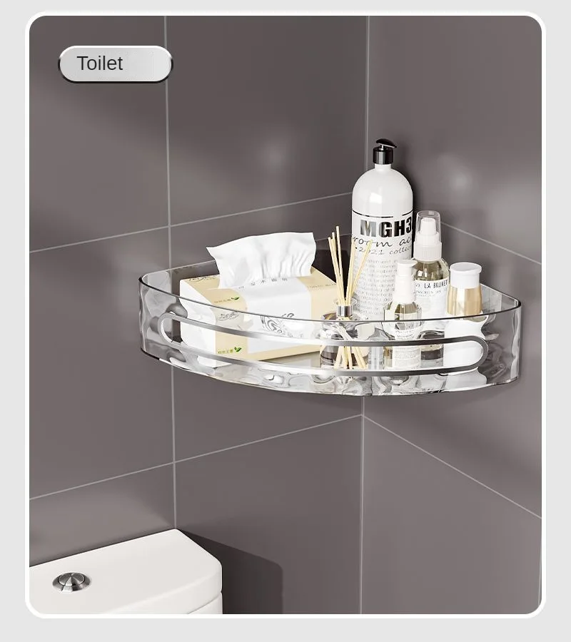 מדף אחסון פינתי ללא קידוח יוקרתי פתרון חכם לשמירת על סדר מראה אלגנטי פלסטיק איכותי למים לחות (מתאים קרמיקה,זכוכית ,שיש)